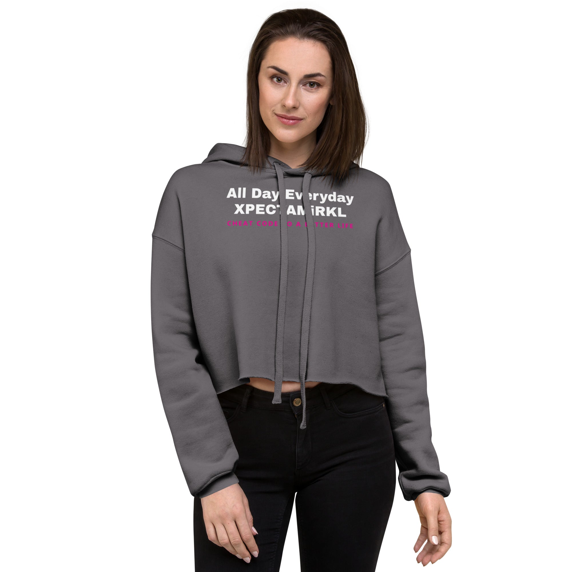 Women's Crop Top Hoodie - White Lettering